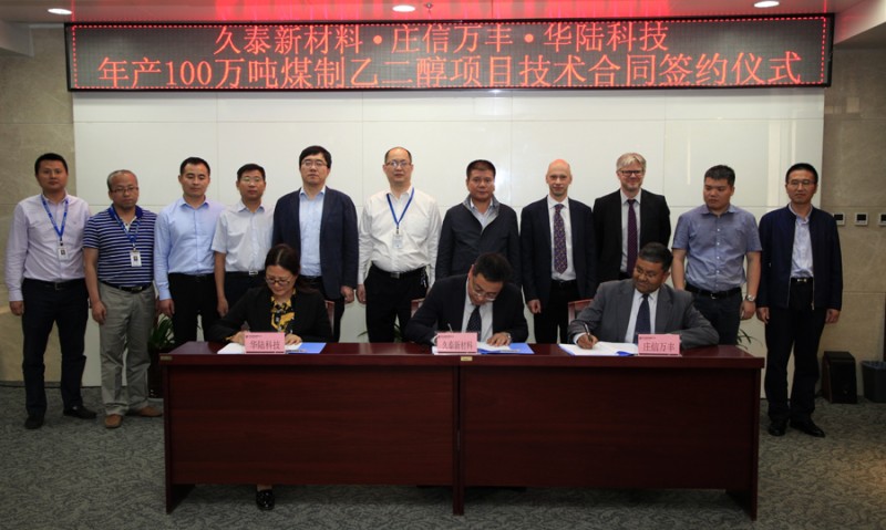 此次顺利签约代表着华陆科技成为国内首家与庄信万丰合作并采用其乙二醇技术的工程公司,也为华陆科技与内蒙久泰、庄信万丰在今后的项目合作方面打下了坚实的基础。