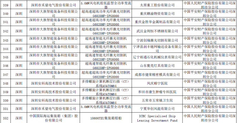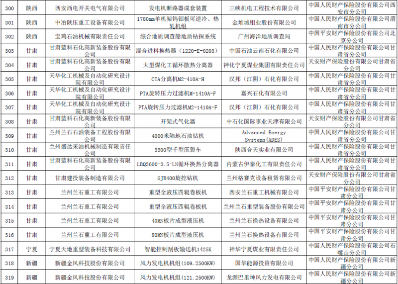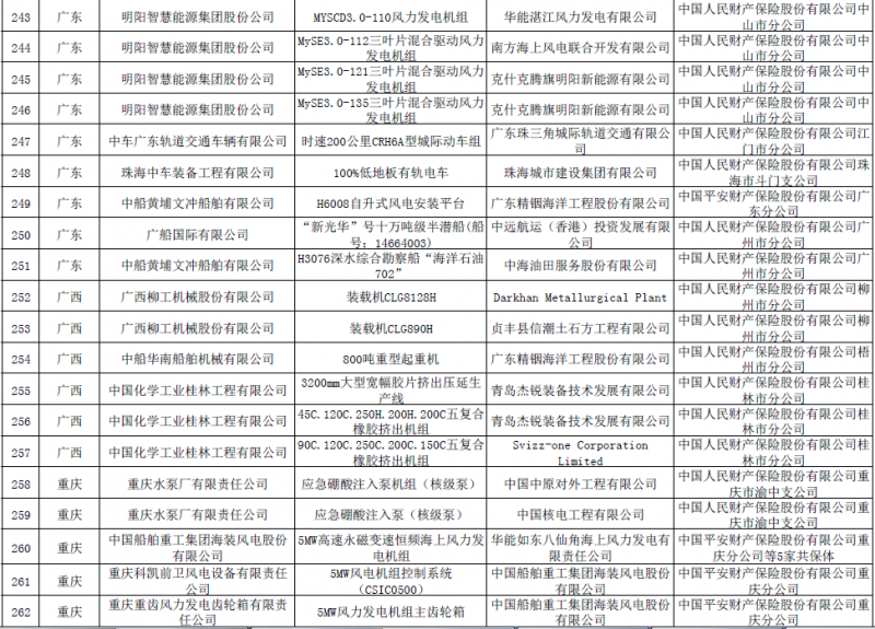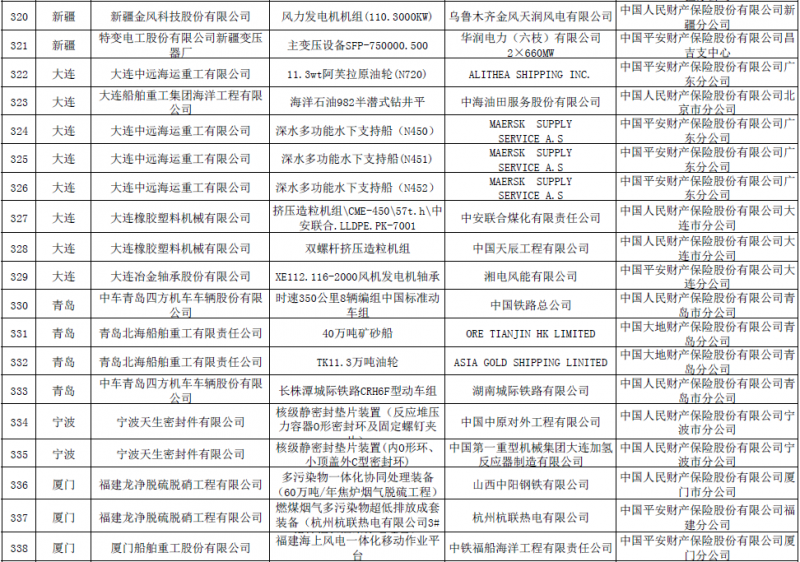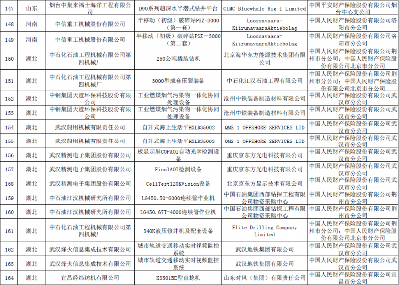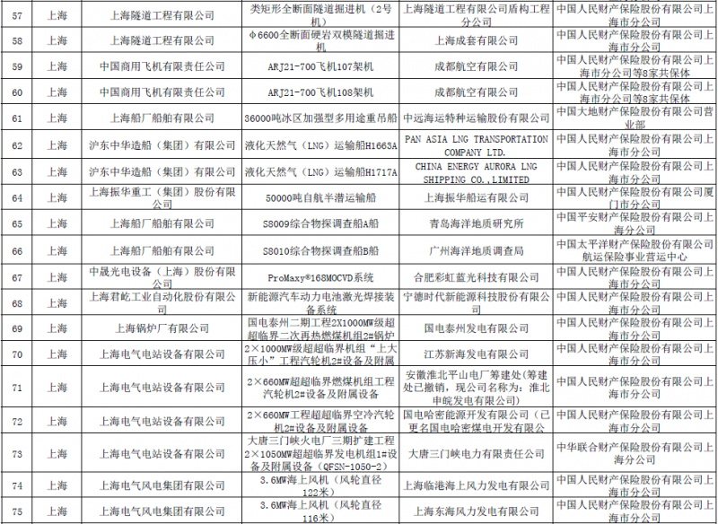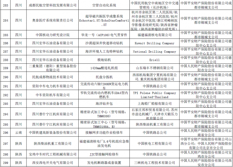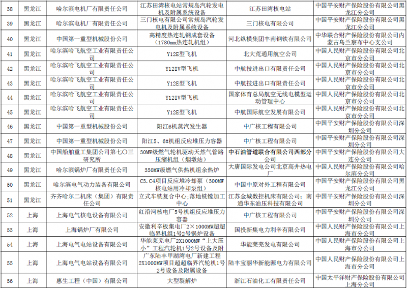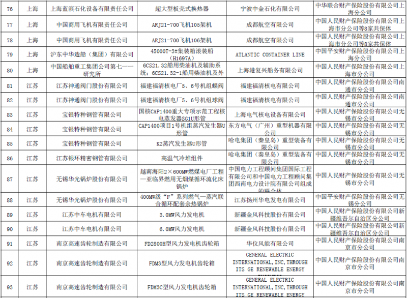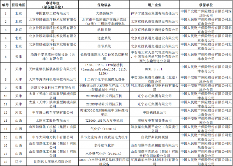 附:2018年首台(套)重大技术装备保险补偿拟补助项目名单