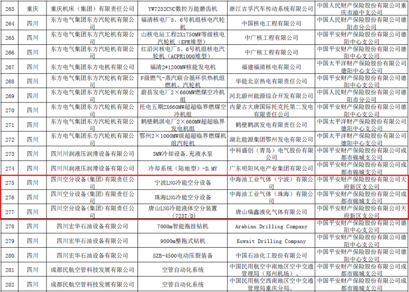 近日,工信部印发《2018年首台(套)重大技术装备保险补偿拟补助项目公示》,对372项重大技术装备保险补偿拟补助项目进行公示。其中,涉及空分公司的空分装备,如沈阳透平机械股份有限公司的神华宁煤400万吨.年煤间接液化项目10万空分装置压缩机组,还有杭州杭氧股份有限公司的十万等级大型内压缩流程空气分离成套装备,以及四川空分设备(集团)有限责任公司的宁波LNG冷能空分设备、珠海LNG冷能空分设备、唐山LNG冷能液体空分装置(723T/D)等。