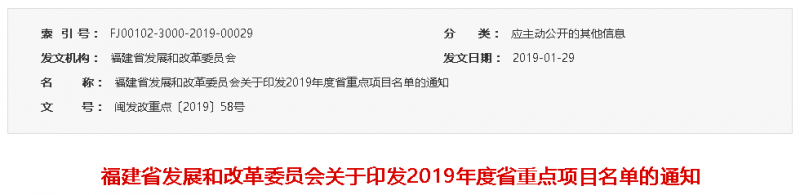 福建省发改委指出,各级各部门要以习近平新时代中国特色社会主义思想和党的十九大精神为指导,坚持新发展理念,按照“五个一批”项目要求,持续加大招商引资力度,促进项目滚动接续,不断加强项目实施质量和水平,为坚持高质量发展落实赶超提供有力支撑;要加强要素保障,成立项目工作专班,落实省重点项目用地、用林、用海和建材、火工油品、物资供应等需求,促进重点项目建设顺利推进,确保全面完成年度任务。