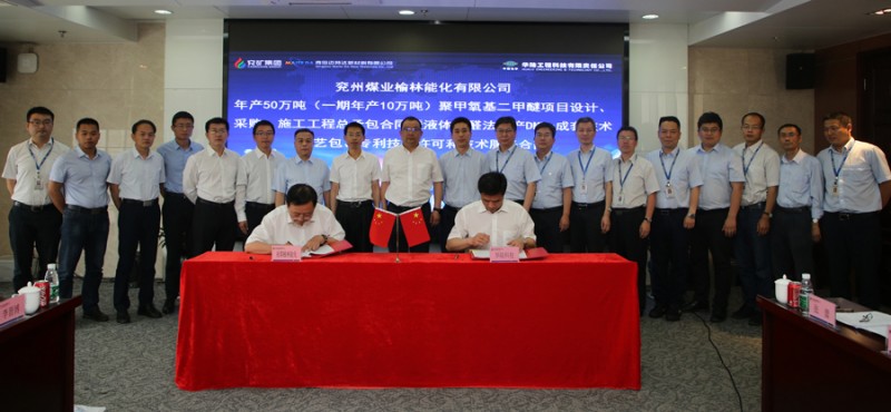 6月11日,兖州煤业榆林能化有限公司年产50万吨(一期年产10万吨)聚甲氧基二甲醚项目设计、采购、施工总承包合同签约仪式在华陆大厦举行。