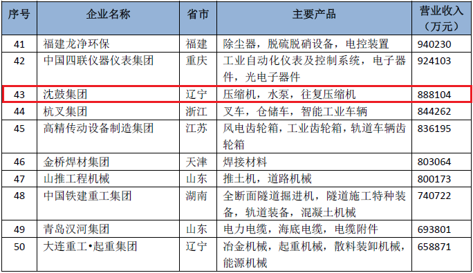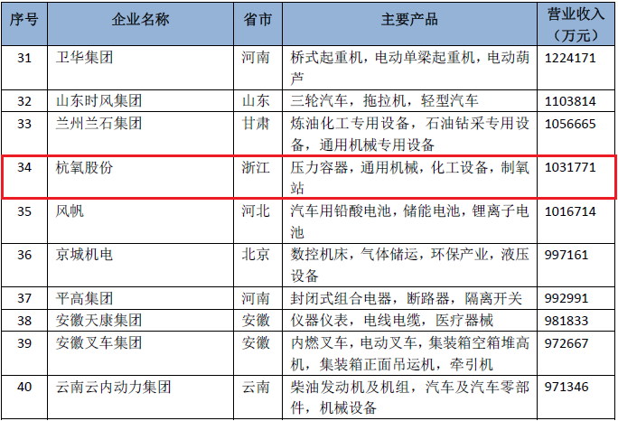 榜单显示,杭州杭氧股份有限公司以103亿元的营业收入位列2018年中国机械工业百强榜的第34位,同比2017年跃升6位;沈阳鼓风机集团股份有限公司以89亿元位列榜单第43位;陕西鼓风机(集团)有限公司以59亿元位列榜单第51位,同比2017年跃升4位;四川空分设备(集团)有限责任公司以38亿元位列榜单第66位,同比2017年跃升17位。通过榜单可以看出,这4家企业营业收入同比2017年增长显著,排名位次除沈鼓外均有所提升。