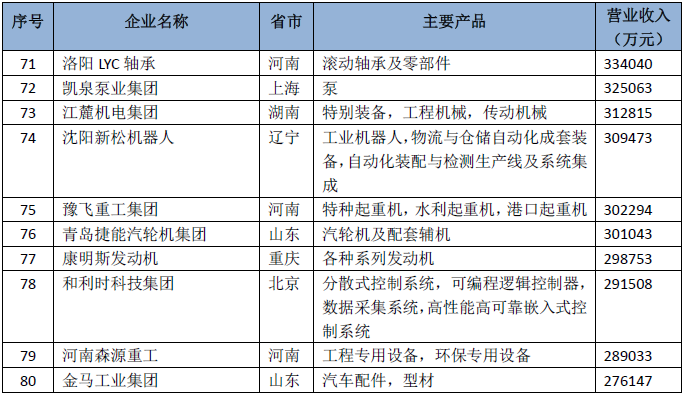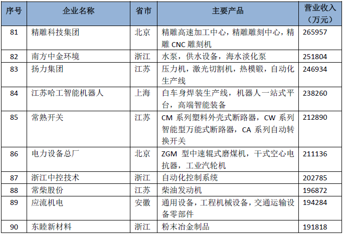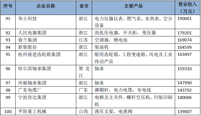 2018年中国机械工业百强排名表