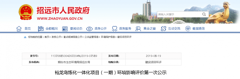 8月19日,裕龙岛炼化一体化项目(一期)环境影响评价第一次公示,离实质性的实施已越来越近。