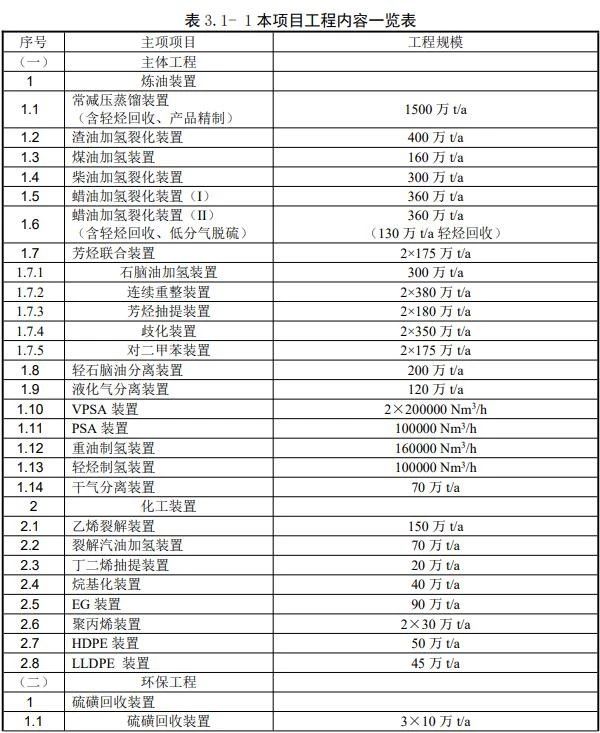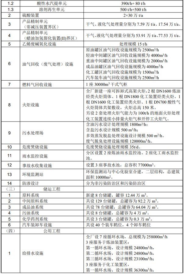 炼化一体化项目包括主体工程、环保工程、储运工程、公用工程、相应配套设施及依托工程。